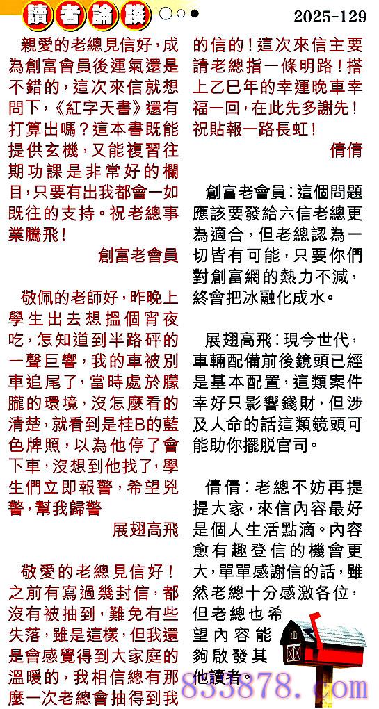129期:彩民推荐贴信读者论坛