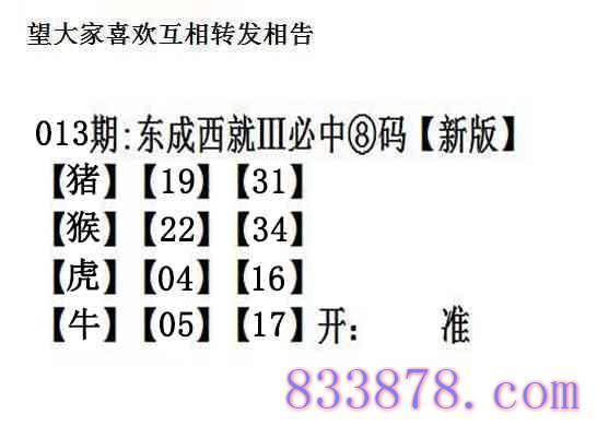 013期:另版【东成西就四肖8码】