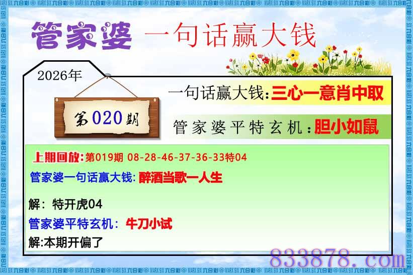 主题 : 020期:管家婆一句话赢大钱