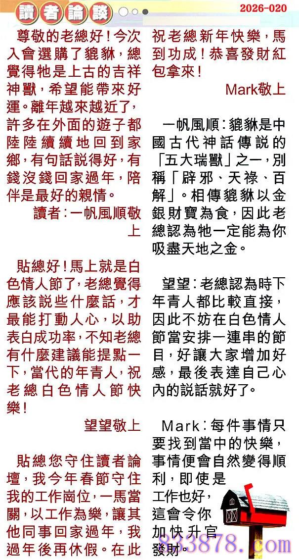 020期:彩民推荐贴信读者论坛