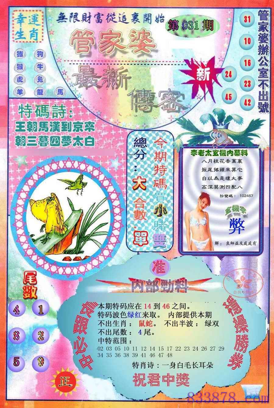 主题 : 031期:最新管家婆传密
