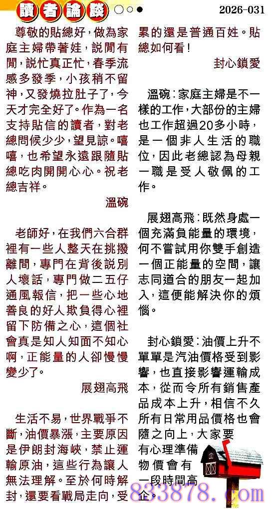 031期:彩民推荐贴信读者论坛