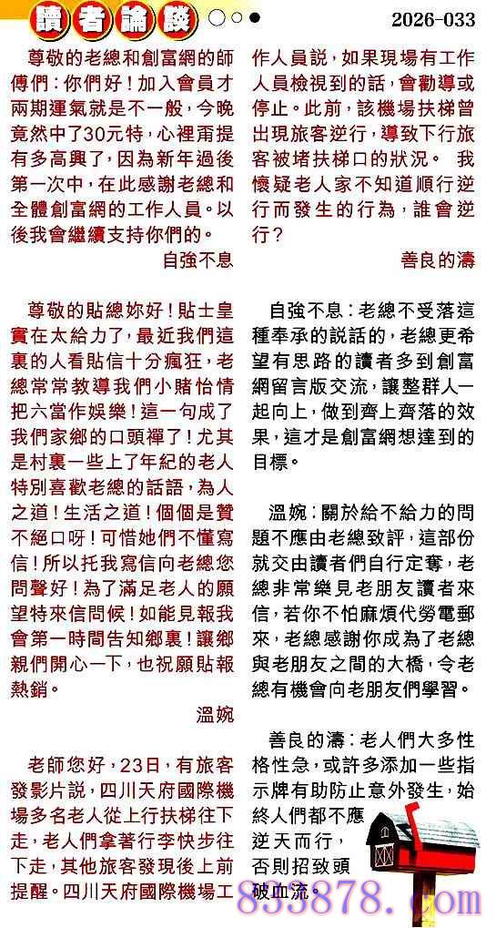 033期:彩民推荐贴信读者论坛
