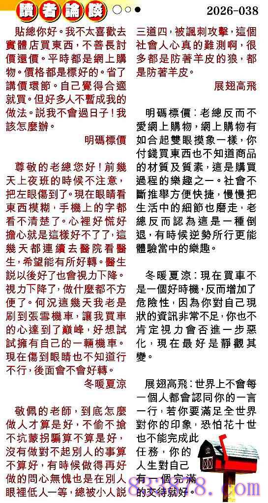 038期:彩民推荐贴信读者论坛