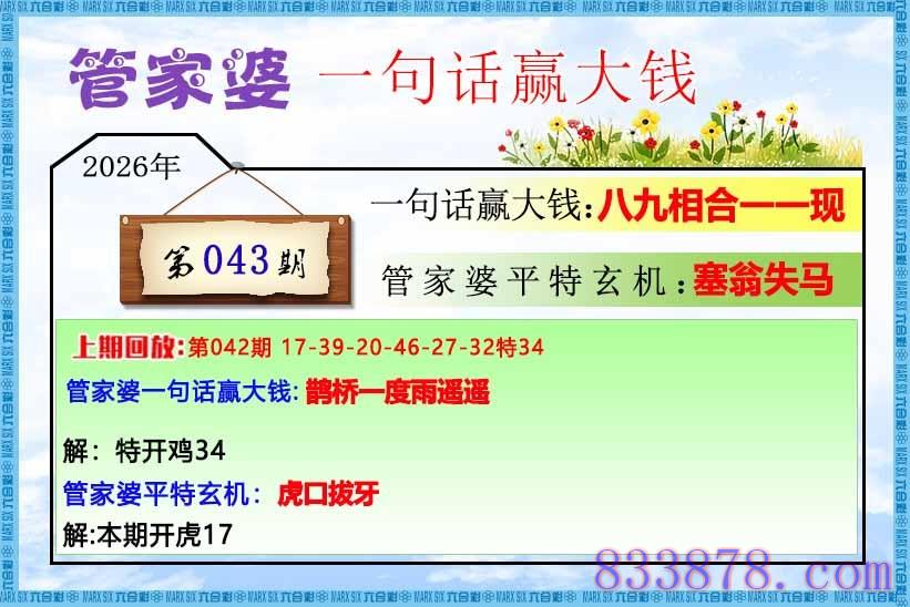 主题 : 043期:管家婆一句话赢大钱