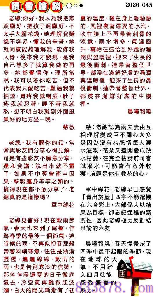 045期:彩民推荐贴信读者论坛